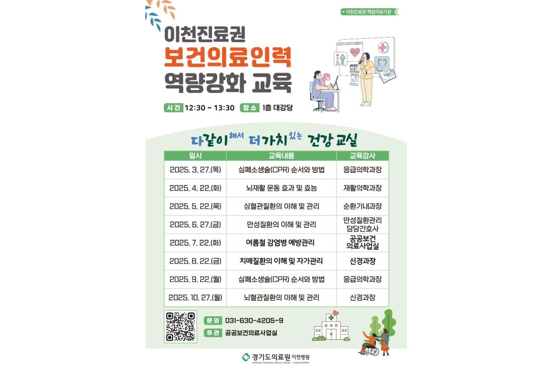 이천권 보건의료인력 및 지역주민 대상 필수보건의료분야(심뇌혈관질환, 만성질환, 감염병 등) 질병 인식도 향상 및 자가 건강관리 능력 향상을 위한 목적으로 진행한 건강교실이 막을 내렸다.